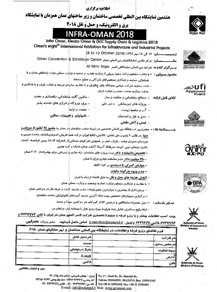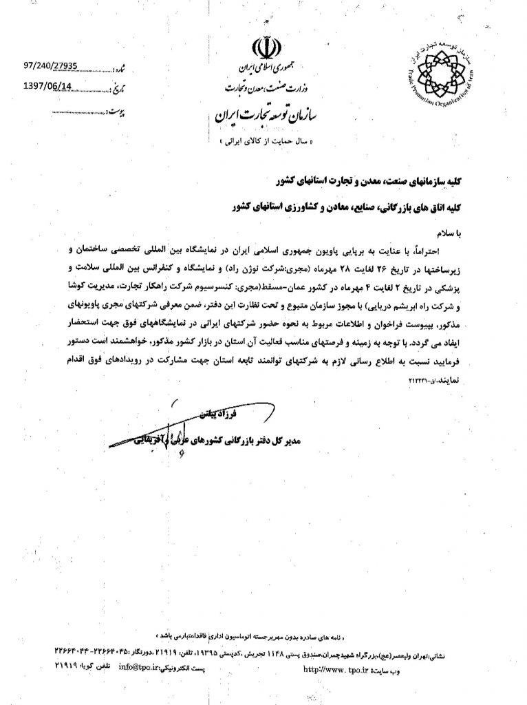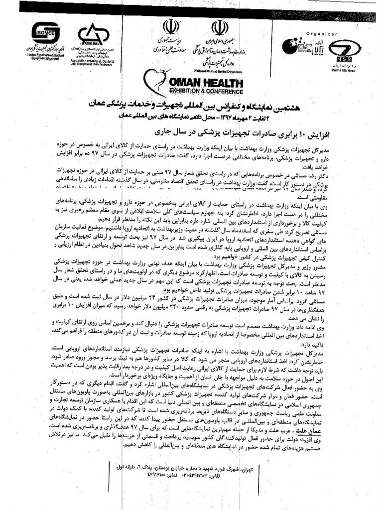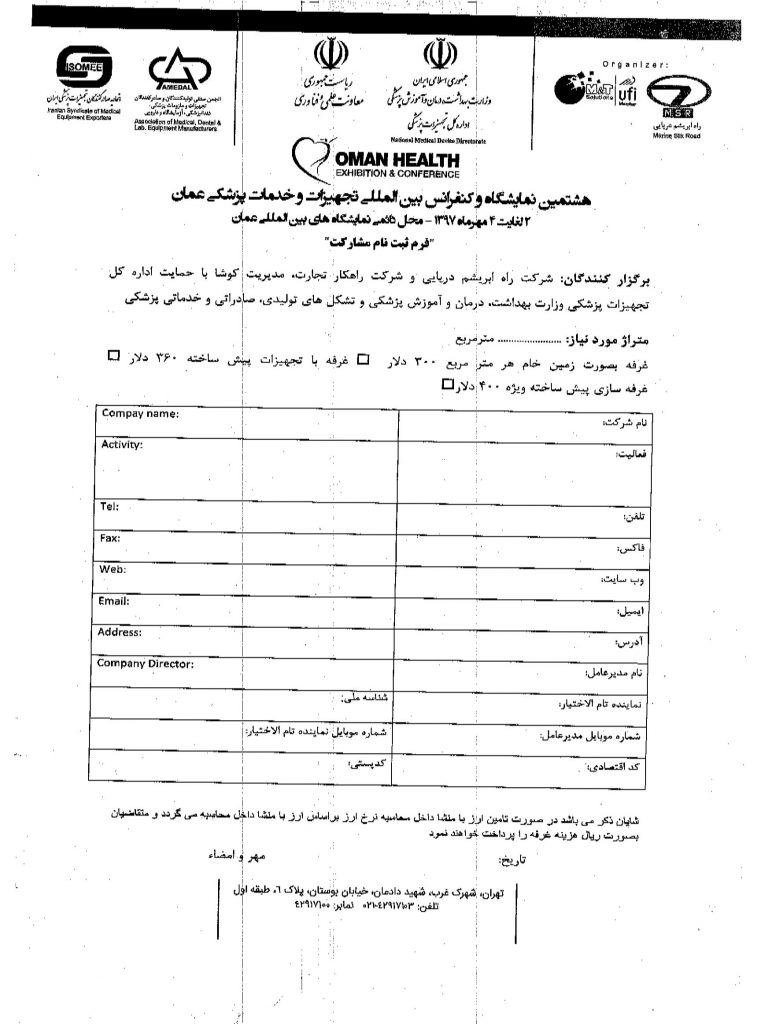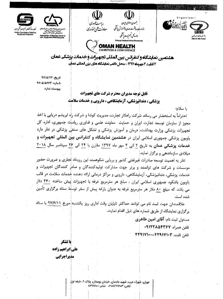 فراخوان هشتمین نمایشگاه و کنفرانس بین المللی تجهیزات و خدمات پزشکی عمان مدیر کل۱۳۹۷/۶/۱۹ ،۰۵:۲۶:۵۲ +۰۰:۰۰1397/06/19|اخبار, اطلاعیه ها|۰ Comments این مطلب را به اشتراک بگذارید XLinkedInWhatsAppTelegramEmail Leave A Comment لغو پاسخComment